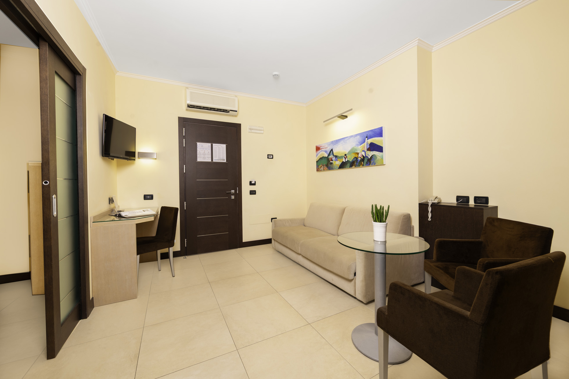 Das Sofa im Wohnzimmer lässt sich in ein bequemes Doppelbett verwandeln, wodurch diese Suiten ideal für Familien sind.